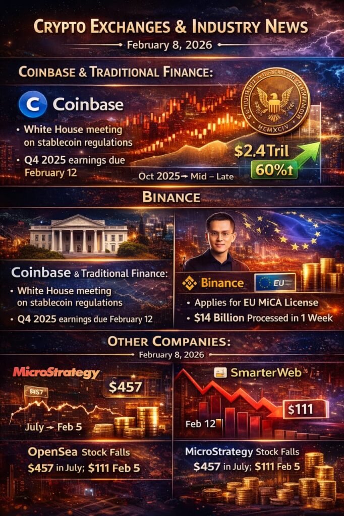 Coinbase executives and major banking representatives met with White House officials in early February to negotiate stablecoin regulations. A political agreement is required by the end of the month to preserve bipartisan support for upcoming legislation. Separately, Senator Cynthia Lummis introduced proposals clarifying regulatory boundaries between the SEC and CFTC. Coinbase is scheduled to release its Q4 2025 earnings on February 12.